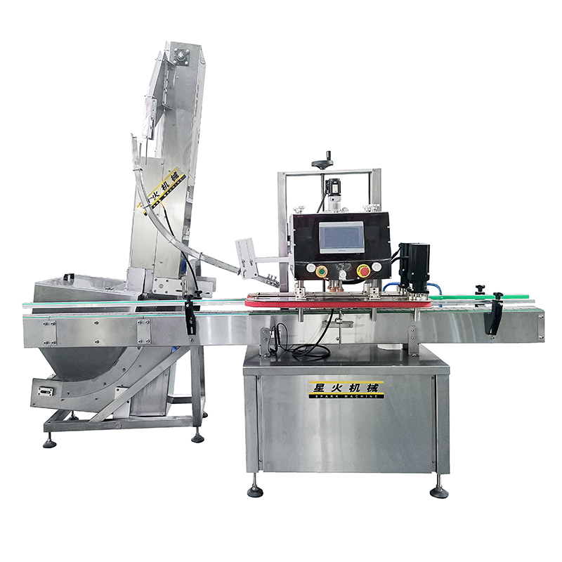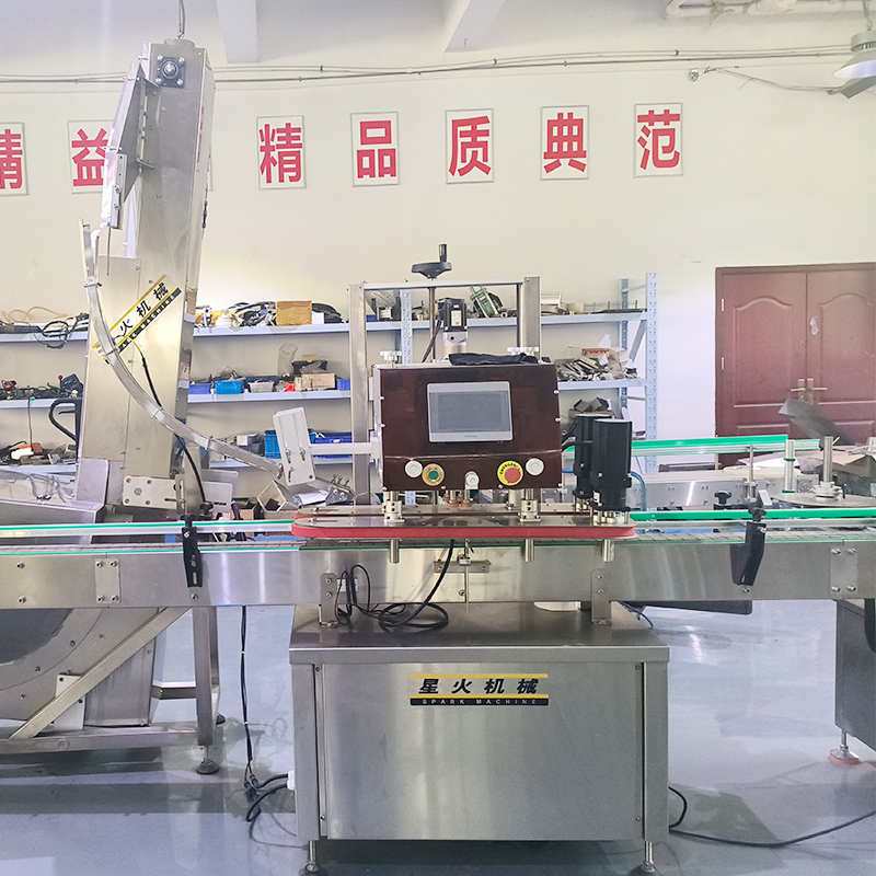 全自动夹盖旋盖机是一种利用旋转力直接将瓶盖旋紧在容器瓶上,它的工作方式属于自动化控制输出夹盖、旋盖,通过利用旋盖轮与瓶盖之间的摩擦力,带动瓶盖旋转的力度来完成旋盖动作。